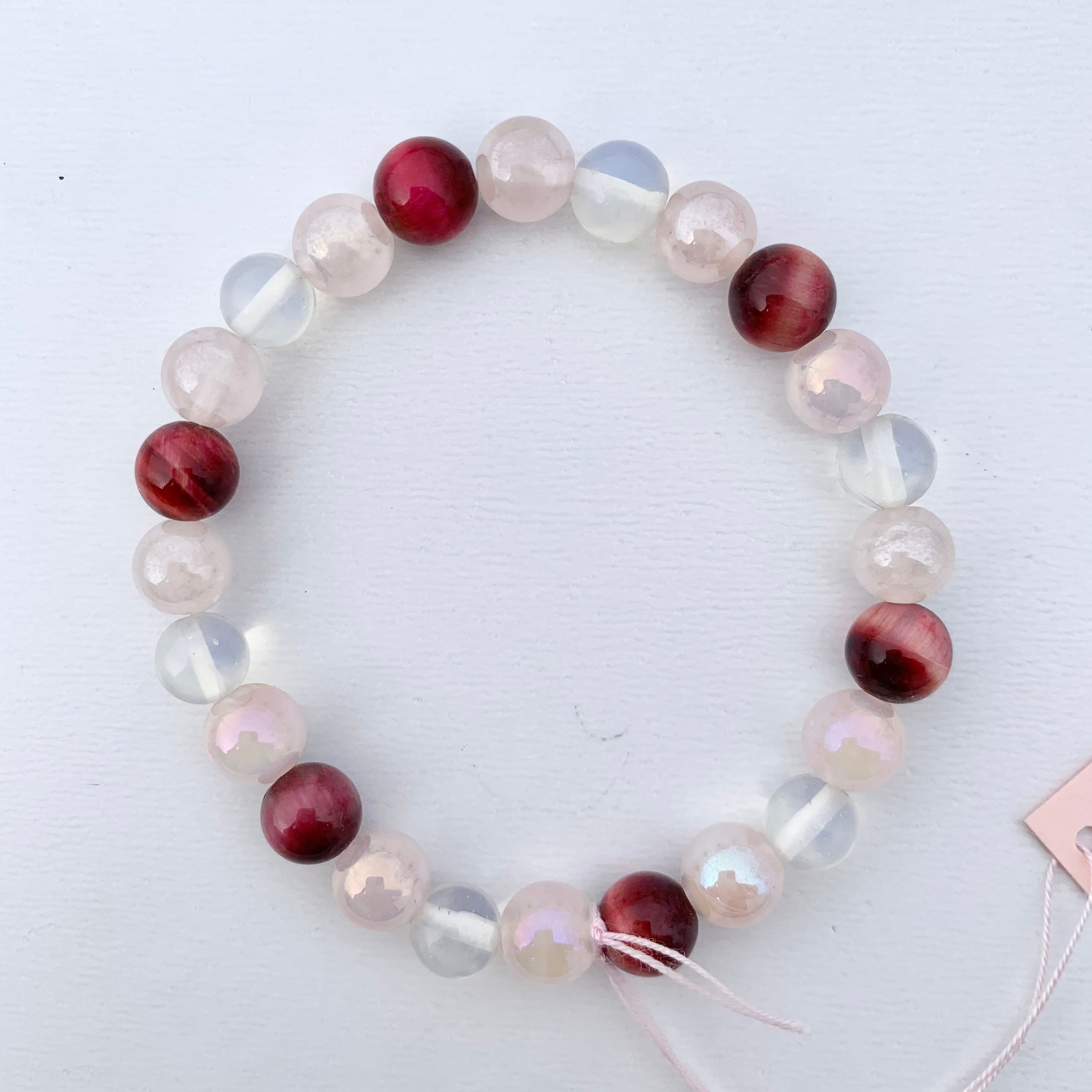 女性性を高めて、内面の美を輝かせてくれるというローズクォーツでお作りしたパワーストーンです。