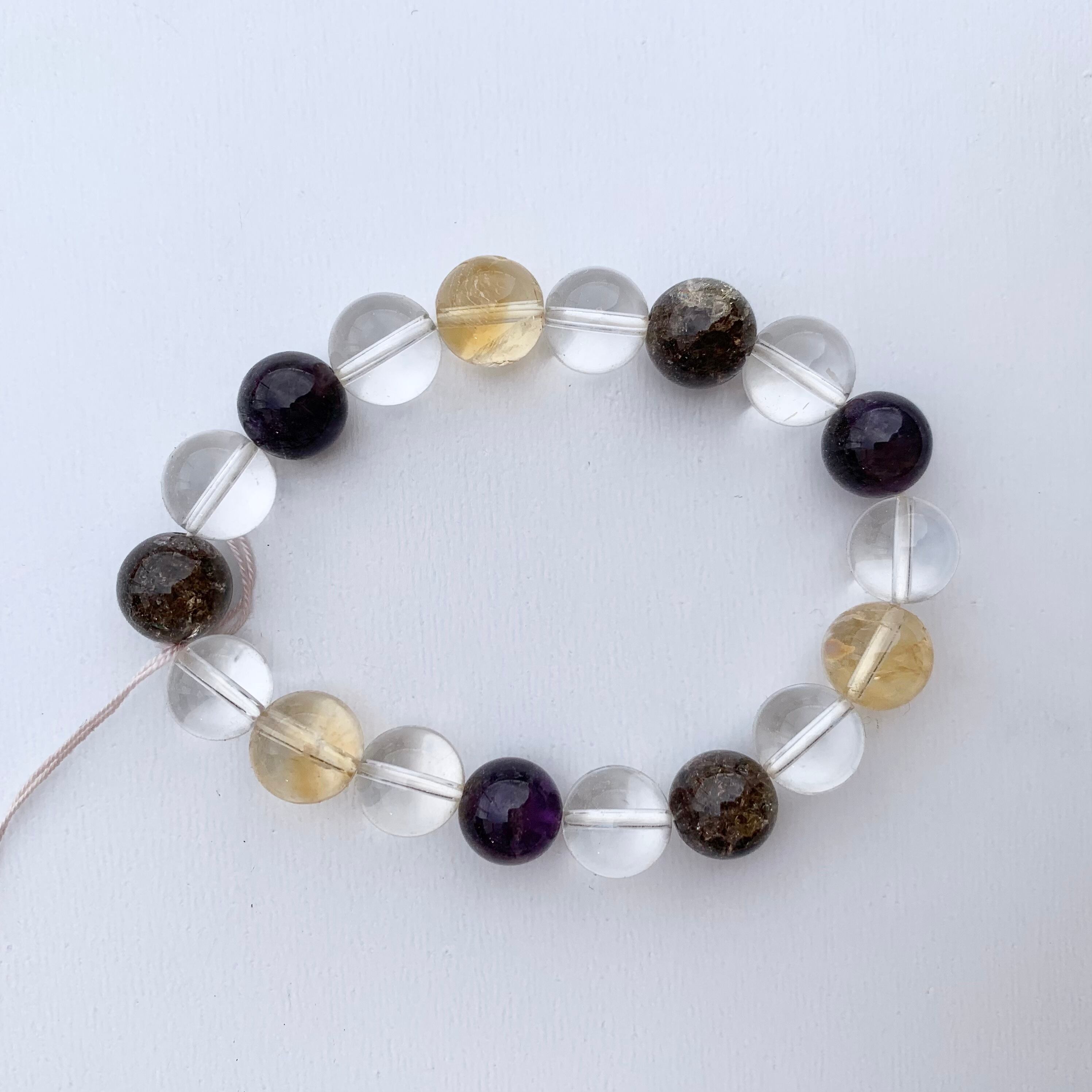 アメジスト、スモーキークォーツ、シトリン、水晶でお作りしたブレスレットです。