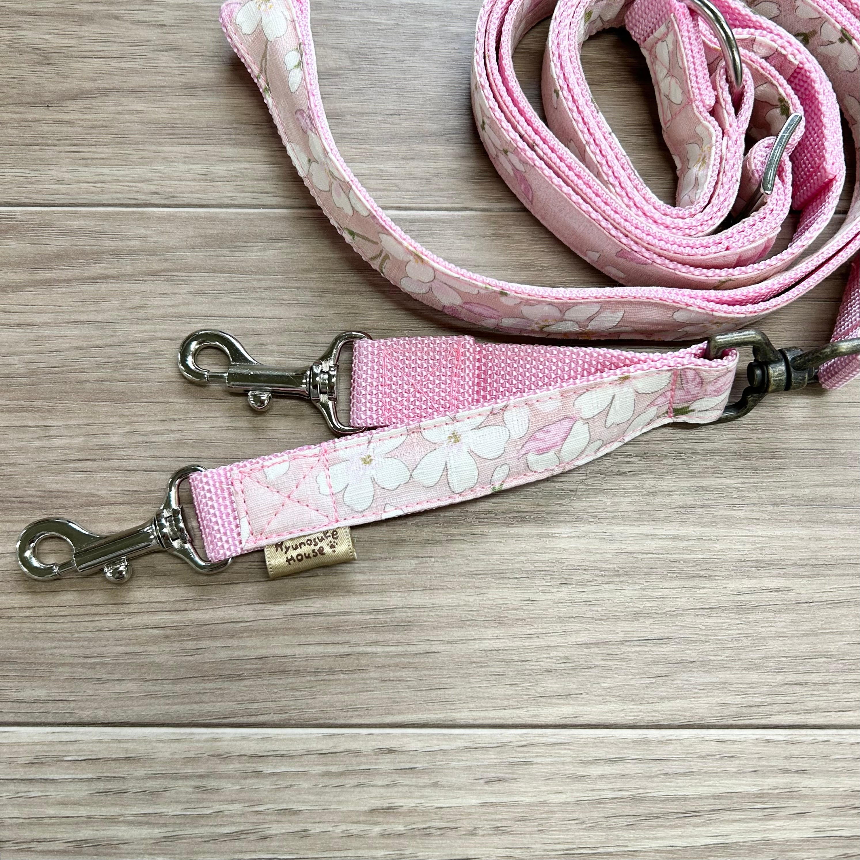 先が二股になっているので、短い方をハーネス、長い方を首輪 ( ハーネス無しでダブル首輪の場合は首輪に ) 付けてご利用ください。