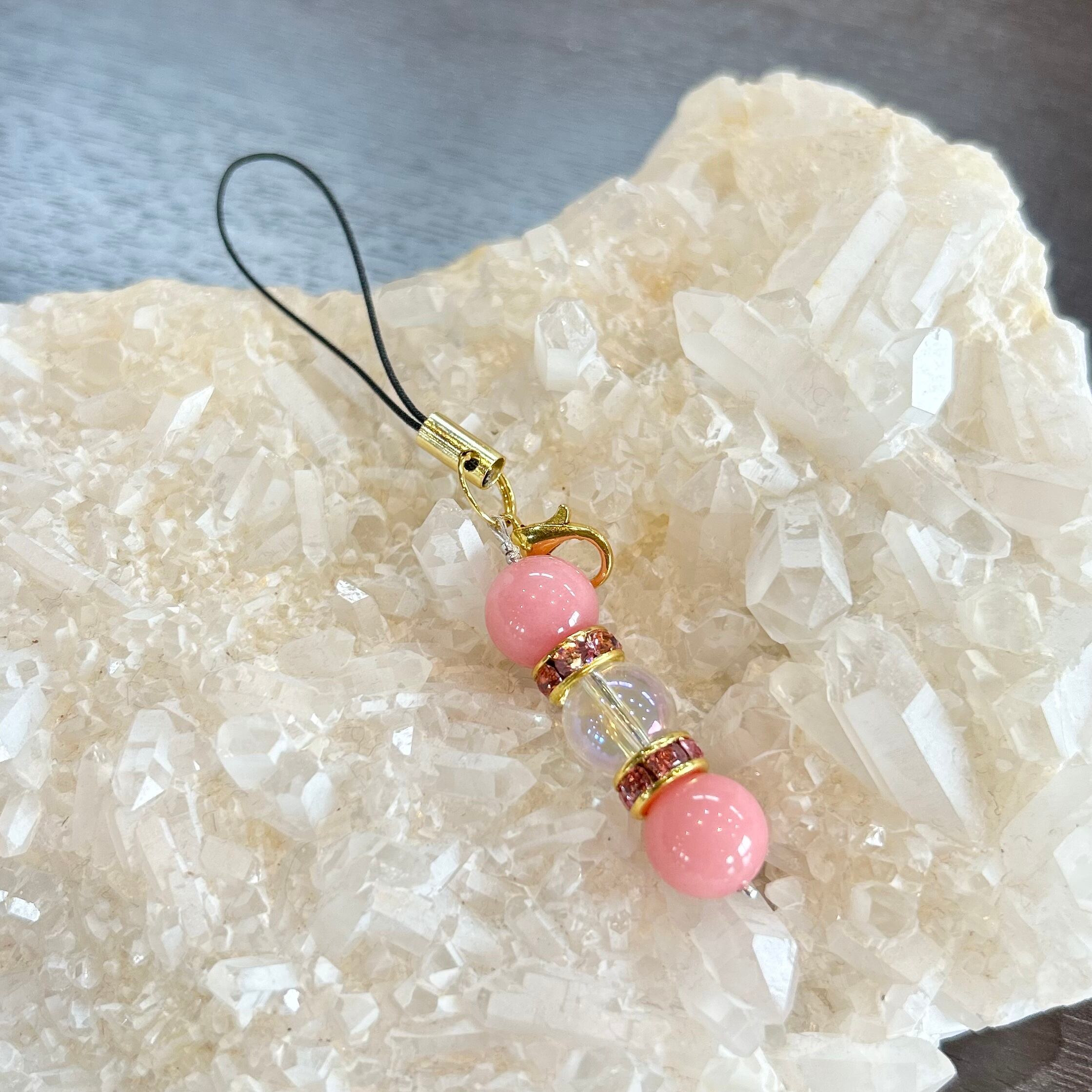自己の表現力を高めることで、運や人を呼び寄せる力やポジティブな気持ちをもたらすと言われるオーロラ水晶でお作りしたストラップです。